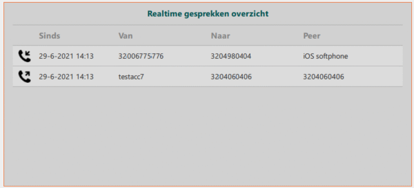 In de module “Realtime Call Info” zie je in realtime alle aan-de-gang zijnde gesprekken.